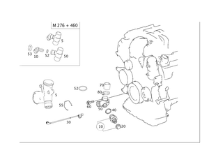 At timing case cover. Cooling water pre-heater.