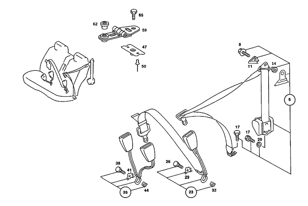 Less lock. Rear seat,outside left and right.